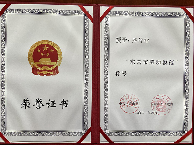 燕傳坤榮獲“東營市勞動(dòng)模...