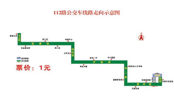 112路:自東營(yíng)長(zhǎng)途汽車(chē)總站始發(fā),途經(jīng)蒙山路、黃河路、西二路、濟(jì)南路、西四路、淄博路、玉山路、到達(dá)終點(diǎn)站雅苑北區(qū),票價(jià)不變,仍為1元/人次;