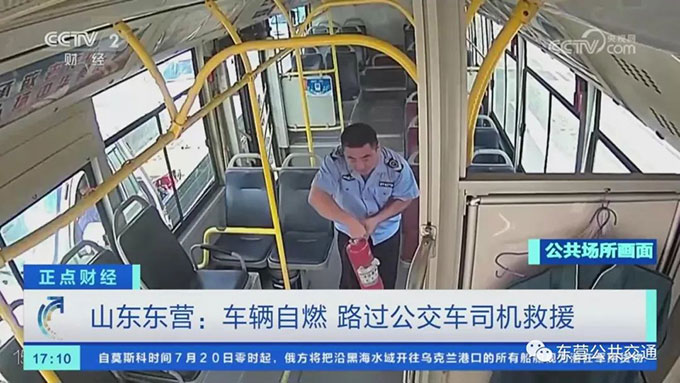央視報(bào)道:車輛自燃 路過公交車司機(jī)救援