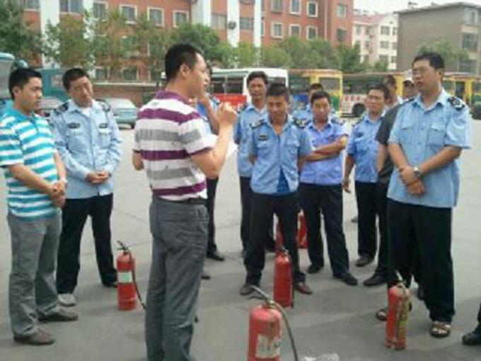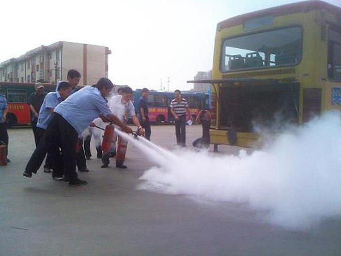 演練前,車隊領(lǐng)導景洪培同志首先講解了公交車發(fā)生火災(zāi)的幾種情況和特點、遭遇突發(fā)火災(zāi)時應(yīng)對的措施、步驟以及應(yīng)重點注意的事項,救火時應(yīng)先做什么,后做什么,應(yīng)該怎么做,需要提醒乘客什么,必要時讓乘客提供什么樣的幫助等一系列的問題。并再三強調(diào)要求駕駛員做好日常兩檢(出車前、收車后)和例查(油電路、滅火器、安全錘),把消防工作重點放在預(yù)防上。萬一突遇車輛火災(zāi),應(yīng)把保護乘客生命安全,及時沉著冷靜疏導乘客放到第一位,然后再迅速進行滅火,報警,通知車隊等工作。最后,所有參加演練的人員模擬進行了車輛著火后,駕駛員如何停車、開車門、疏導乘客下車,斷電源、正確使用滅火器滅火等一系列的實際操作演練,直到參與的駕駛員都能熟練掌握突遇車輛火災(zāi)時的搶險程序。