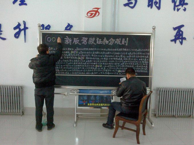 在2013年新交規(guī)出臺之際,為確保車隊車輛安全行駛、人員遵章行車,幫助駕駛員能夠盡快熟悉新交規(guī)的主要內(nèi)容,不斷提高駕駛員安全意識。 近日,汽車二隊別出心裁,通過駕駛員自己動手制作黑板報的形式,讓駕駛員牢固地掌握了日常行駛中容易產(chǎn)生的扣分情況,做到了心中有數(shù),避免了錯誤解讀造成的不必要損失,從而進一步強化了車隊駕駛員的法規(guī)意識、責(zé)任意識和安全意識,規(guī)范了自己的駕車行為,確保行車安全。