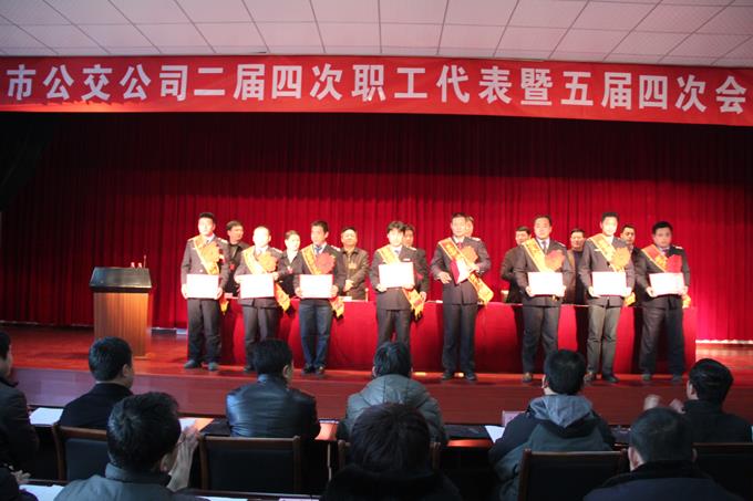 大會由市公交公司副經(jīng)理李學(xué)忠同志主持,趙龍副經(jīng)理宣讀了2013年公司先進(jìn)集體、先進(jìn)個人及優(yōu)秀黨組織的表彰決定,并進(jìn)行了頒獎儀式。會議審議通過了公司經(jīng)理朱新民同志做的《2013年公司工作報告》、工會主席崔磊做的《2013年公司工會工作報告》,會議還審議通過了《公司2013年財務(wù)工作報告》、《公司行車安全制度修改草案》和《公司稽查管理規(guī)定修改草案》等事項。