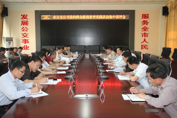 5月17日下午,市公交公司召開(kāi)了黨的群眾路線(xiàn)教育實(shí)踐活動(dòng)集中學(xué)習(xí)講評(píng)會(huì)。公司各黨委委員、黨支部書(shū)記以及各單位負(fù)責(zé)人參加了會(huì)議,市局教育實(shí)踐活動(dòng)督導(dǎo)組組長(zhǎng)燕渭澤副局長(zhǎng)到會(huì)指導(dǎo)講評(píng)會(huì)的開(kāi)展。會(huì)議由朱新民經(jīng)理主持。