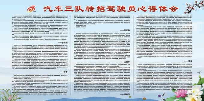 近日,市公交公司為鍛造基層車隊學比趕超的濃厚工作氛圍,促進廣大職工進一步轉變工作作風,做到學有榜樣,趕有目標。汽車三隊組織2014年度公司轉招的駕駛員書寫了“轉招駕駛員工作經(jīng)驗及心得體會”,并制作成展板放在辦公樓大廳,供全體職工瀏覽觀看,激發(fā)大家從中學習轉招人員工作中那種安全駕駛、優(yōu)質服務、樂于助人、團結同事的良好工作態(tài)度,以及低調務實、任勞任怨、埋頭苦干、持之以恒、頑強拼搏的進取精神,以此推動車隊整體工作再上新臺階。