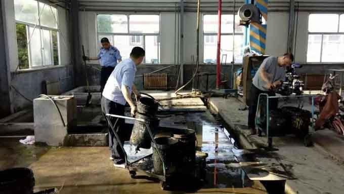 沉淀池的功能主要是將駕駛員涮洗拖把用過的廢水經(jīng)進一步沉淀后再用作沖刷車場的公共廁所,這也是車隊厲行節(jié)儉、廢水二次利用的舉措之一。由于車輛保潔的需要,每天涮拖把不計其數(shù),致使沉淀池內(nèi)的水渾濁而散發(fā)著刺鼻的氣味,池底也積淀了半米之厚的黑色污泥,所以,每年度的開春之后都得進行一次清理。