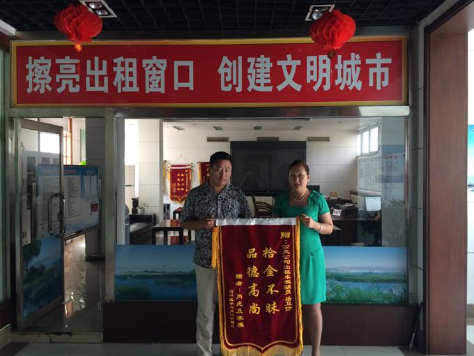 6月24日,市民肖先生拿著一面寫(xiě)有“拾金不昧,品德高尚”的錦旗來(lái)到市公交出租汽車運(yùn)營(yíng)中心,表?yè)P(yáng)出租車駕駛員岳偽仿,夸其是一位拾金不昧的好同志。