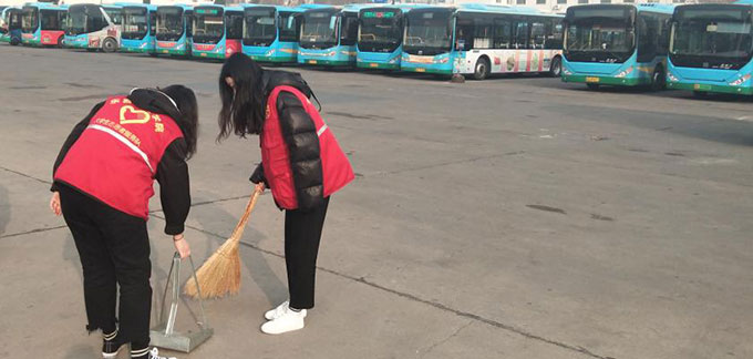 3月2日,來自東營職業(yè)學院青年志愿者協(xié)會的學生和公交公司汽車一隊職工共計10余人,分成兩個志愿小組,一組打掃停車場衛(wèi)生、撿拾果皮紙屑,另外一組幫助公交車駕駛員打掃車輛衛(wèi)生、清潔服務設施?;顒又校蠹也慌屡K不怕累,干得熱火朝天,兩個小時之后,公交車和駐地停車場被打掃得干干凈凈。