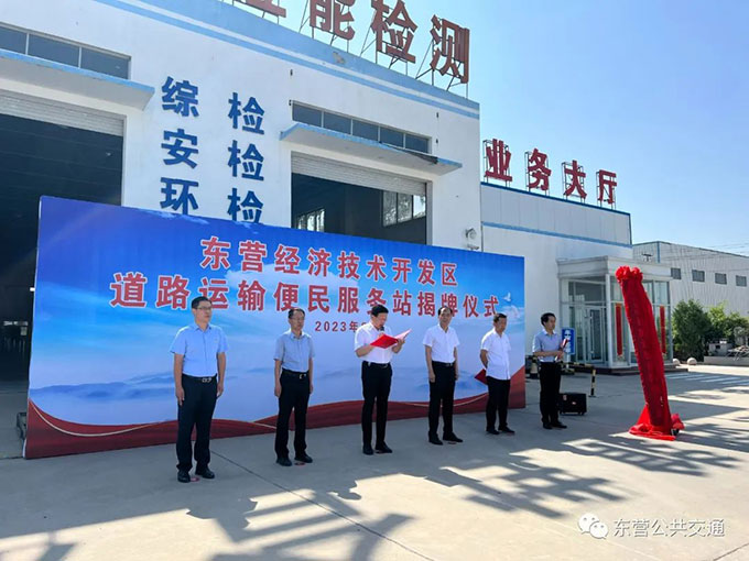 6月9日上午9時,東營經(jīng)濟(jì)技術(shù)開發(fā)區(qū)首家道路運(yùn)輸便民服務(wù)站揭牌儀式在順通汽車檢測站舉行。東營經(jīng)濟(jì)技術(shù)開發(fā)區(qū)、市公交公司以及部分道路運(yùn)輸企業(yè)代表參加揭牌儀式。