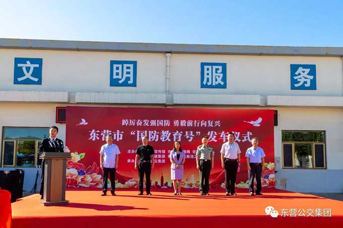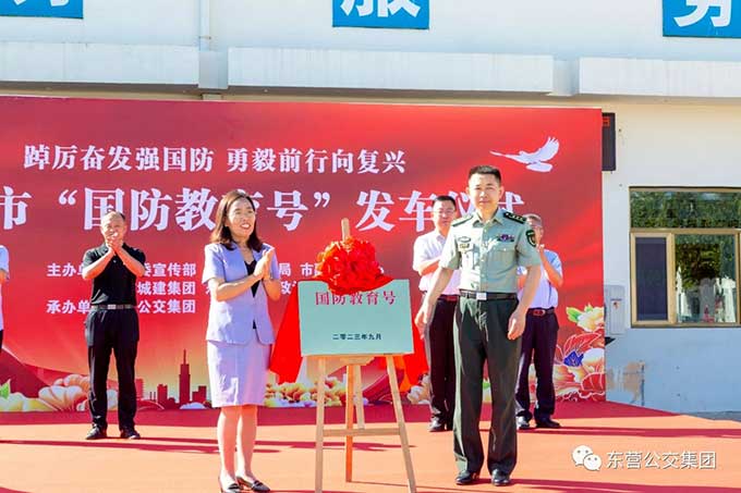 2023年9月14日上午,東營市國防教育號發(fā)車儀式在市公交集團(tuán)隆重舉行。市委宣傳部副部長邱家梅出席儀式并宣布發(fā)車,市交通運(yùn)輸局黨組成員、副局長戴景鵬致辭,東營軍分區(qū)政治工作處主任王志輝、市融媒體中心副主任趙國防、市城建集團(tuán)黨委副書記張文生、市公交集團(tuán)黨委書記趙龍等參加發(fā)車儀式。