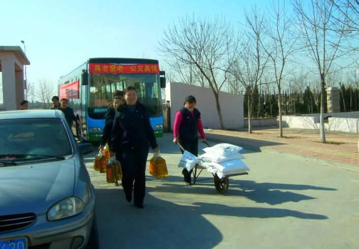 2011年3月8日,在國(guó)際勞動(dòng)?jì)D女節(jié)當(dāng)天,市公交公司汽車(chē)三隊(duì)112路車(chē)組駕駛員丁文美、馬云麗、王瑞華等三人代表15位全體112路駕駛員用在公司文明服務(wù)示范線路評(píng)比活動(dòng)中得來(lái)的2000元獎(jiǎng)金,購(gòu)買(mǎi)了油、米、面等慰問(wèn)品對(duì)龍居鎮(zhèn)敬老院的老人們進(jìn)行了慰問(wèn)并送去了祝福,得到了老人們的熱烈歡迎。駕駛員代表丁文美表示:尊老愛(ài)幼是中華民族的傳統(tǒng)美德。我們年輕人是在老一輩人打下的基礎(chǔ)上才能過(guò)上現(xiàn)在的好日子,所以我們不能忘記各位老人們。能用這樣的方式過(guò)節(jié),我們都覺(jué)得非常有意義。