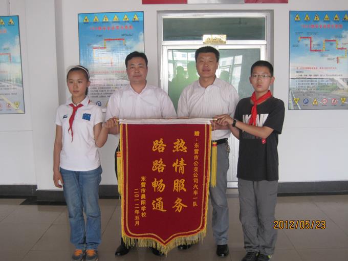 5月23日上午,市晨陽學(xué)校師生三人拿著一面寫有“熱情服務(wù)、路路暢通”的錦旗來到市公交公司汽車一隊,感謝車隊在5月17至18日為期兩天的旅游包車中,為晨陽學(xué)校兩千多名師生提供的熱情、周到、優(yōu)質(zhì)的服務(wù)。對近幾年公交服務(wù)質(zhì)量的不斷提升表示稱贊,并向公交廣大干部職工表達(dá)深深的敬意。